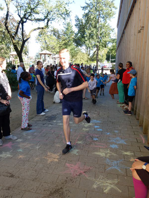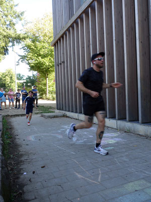 Angefeuert von begeisterten Fans auf der Strecke gaben die Läuferinnen und Läufer ihr bestes, um anschließend bei einem Wasser wieder zu Luft zu kommen und zu vergleichen, wie viele Runden jeder geschafft hatte.